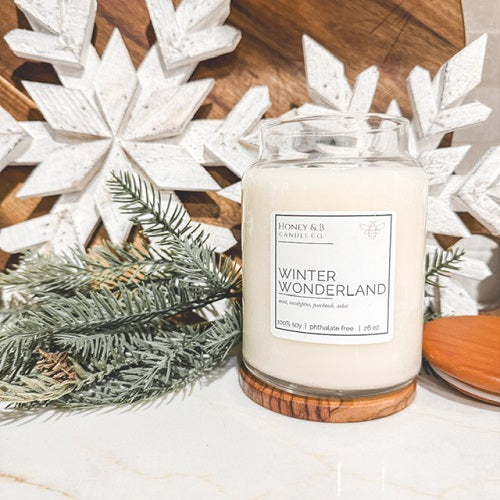 Step into a frosty forest escape with Winter Wonderland. This enchanting blend captures the crisp magic of fresh snowfall drifting through pine-laden woods—think icy air kissing evergreen branches, a whisper of wood smoke curling through silent trees, and that unmistakable clean, cool freshness that makes you want to take a deep breath. Light this candle and transport yourself to nature's most peaceful winter moment, where the world feels hushed, sparkling, and wonderfully serene.